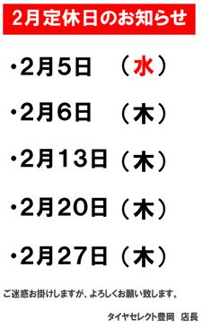 今月のお休みのご案内です。