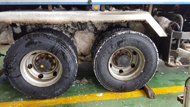このサイズのタイヤ交換含め、フォークリフトのタイヤ交換も
