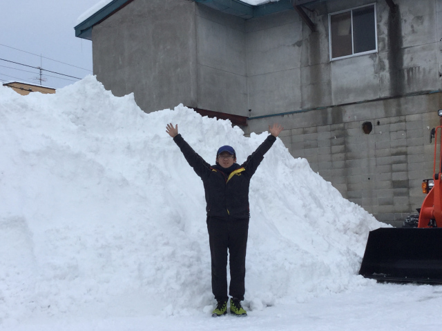 ここ数日の雪で、駐車場の雪山も大きくなり、