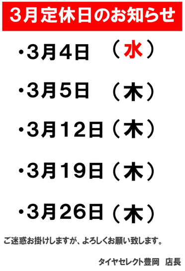 「3月の定休日のお知らせ」を