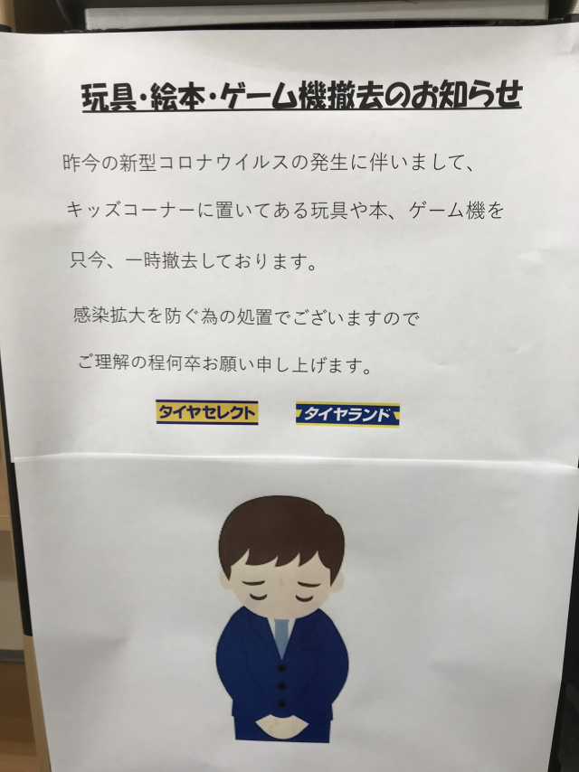 キッズコーナーの玩具やゲーム機を一時撤去しております。