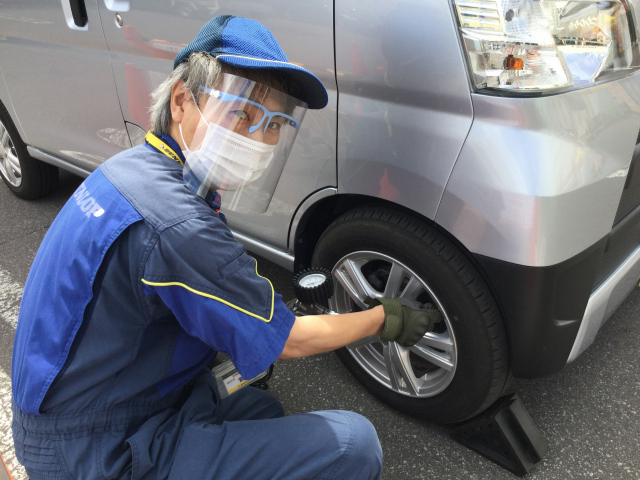 車から降りずに、タイヤ点検が出来るサービスなんです!