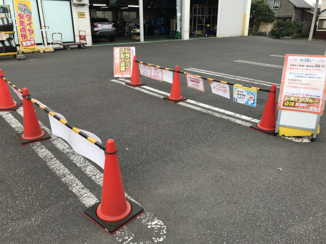 ん?当店の駐車場ではコーンでくくられている場所が・・・