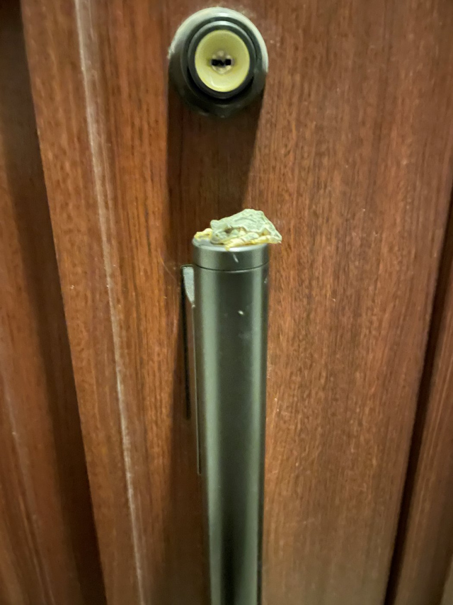 ドアの取っ手の上部にカエルさんが!?