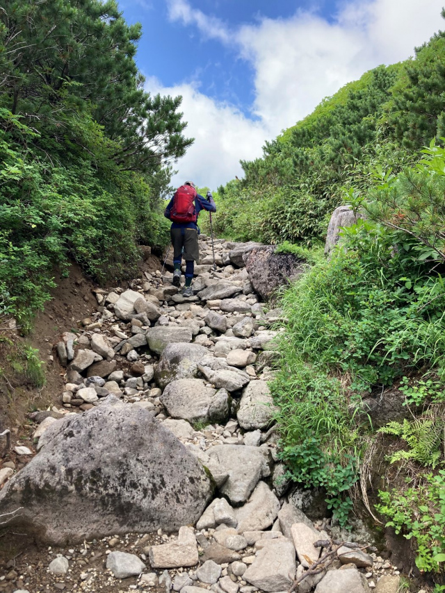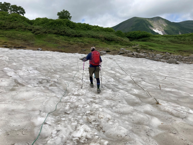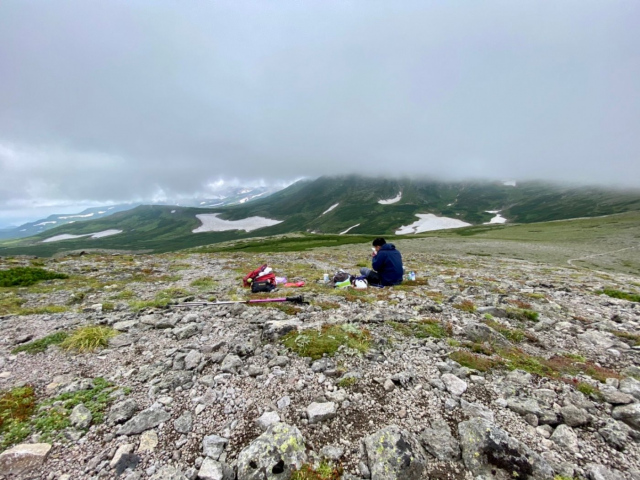 山の天気は変わりやすく、頂上付近はガスが掛かった状況。