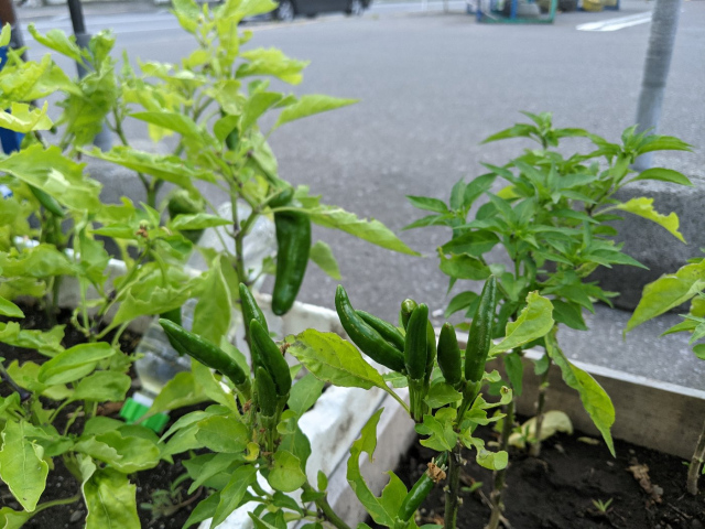 唐辛子とジャンボしし唐がいい感じに育ちました(^_^)v
