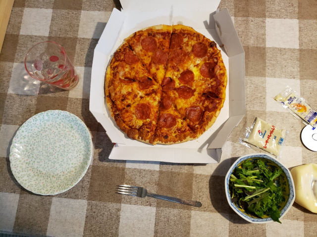 定番商品のサラミピザはやっぱり、美味しかったです!