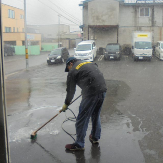 駐車場の清掃中!