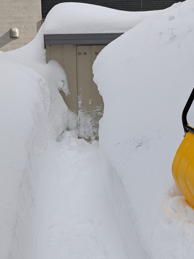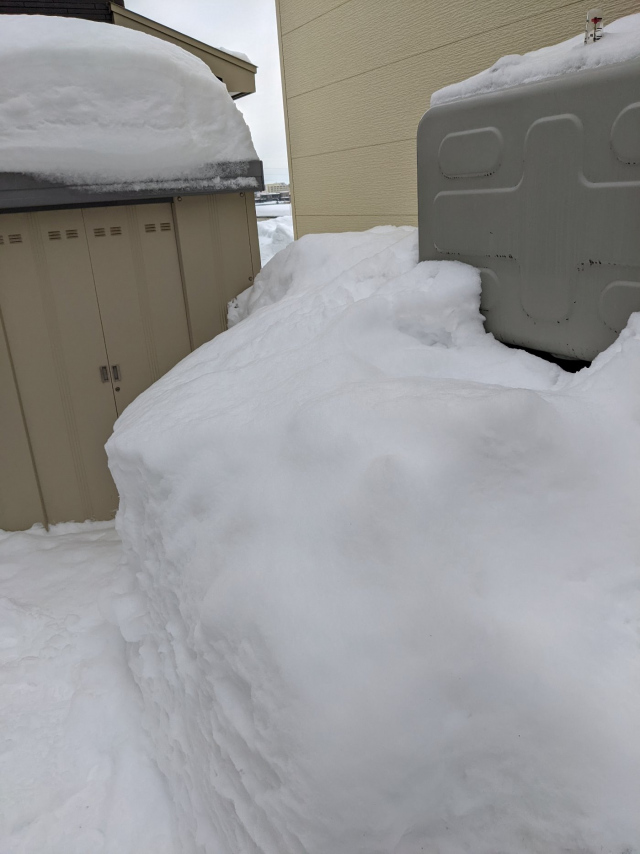 先月末に物置が潰れる前に雪下ろししたのですが、、、