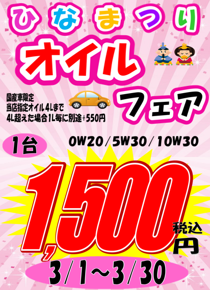 ※国産車限定で4Lを超えた場合、1L毎に550円頂きます。