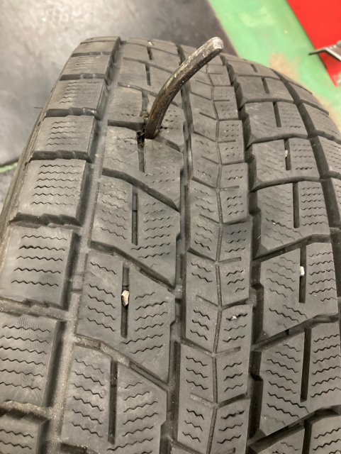 何かが刺さってパンクしたタイヤを預かり、