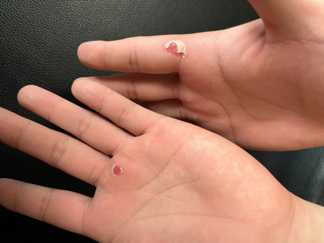 手がボロボロ(笑)