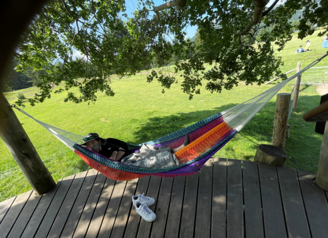 大自然の中ハンモックで寝たり