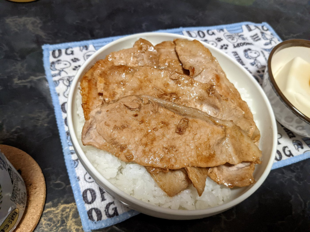 これまたよく作る、「生姜焼き乗っけ丼」!