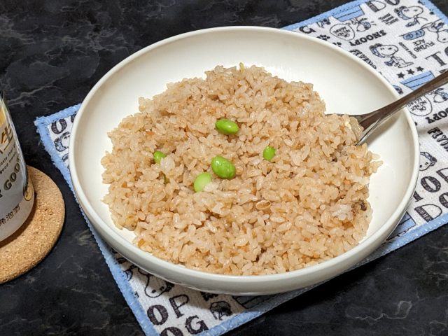 余ったご飯で、枝豆&鮭フレークチャーハンに!
