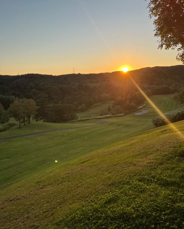 緑に囲まれたコースと夕日のセットは最高の景色!!