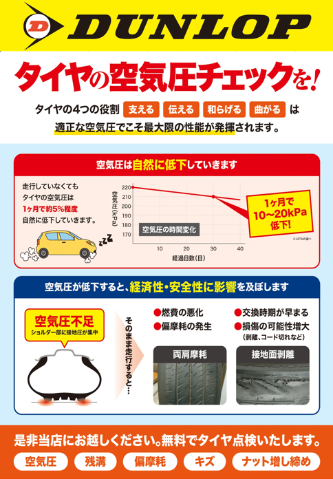 タイヤやバッテリー点検の無料点検をオススメしております!