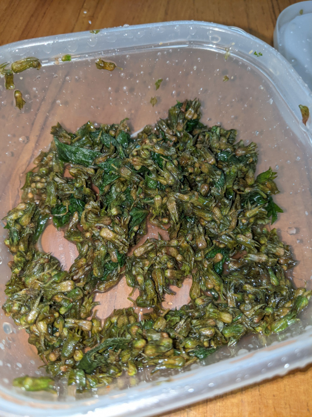 とりあえず、塩をシソの実の総グラム数の十分の一、