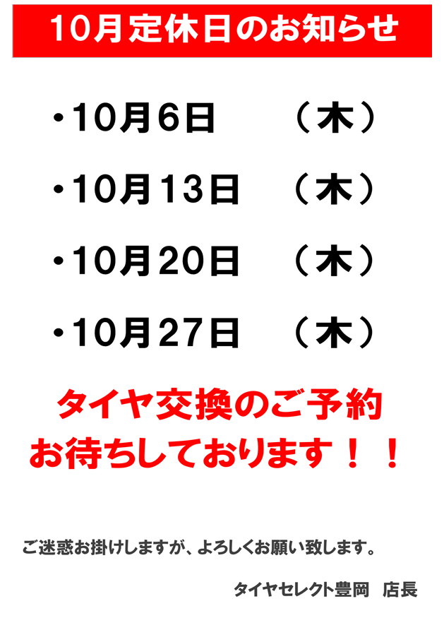 10月も皆様のご来店お待ちしております。