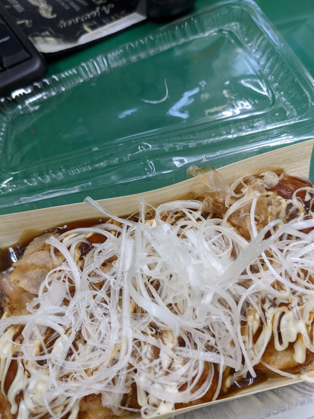 「ネギ乗せソースたこ焼き」をつまみ、、、