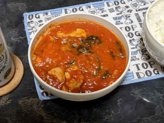 【豚肉とほうれん草のトマト煮込み】です!!!