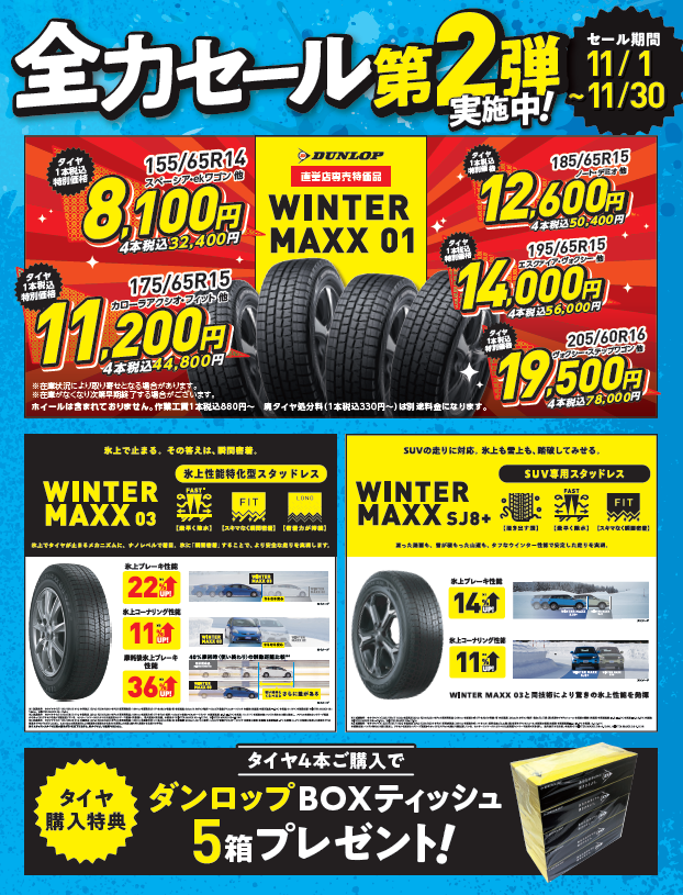 また、タイヤ4本ご購入で
