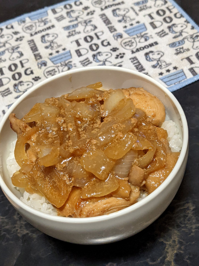 簡単酢~の「照り玉ねぎチキン丼」に~