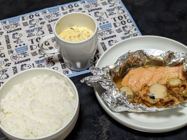 「鮭とホタテのバター焼き」&「ふわとろ茶碗蒸し」に~