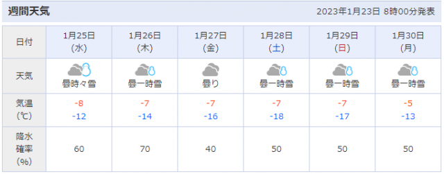 強烈な寒波の影響で、大雪の恐れがあるようです。