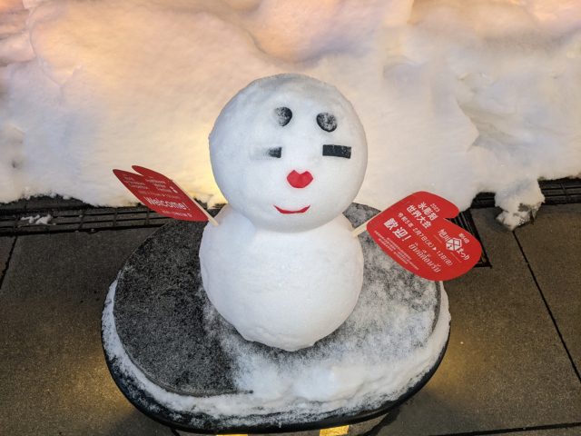 沿道にたくさんのミニ雪ダルマが飾られてました。