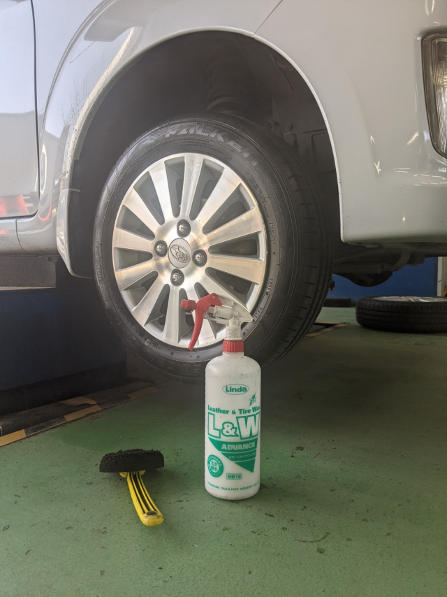 タイヤ交換のお客様の車両のタイヤにサービスで