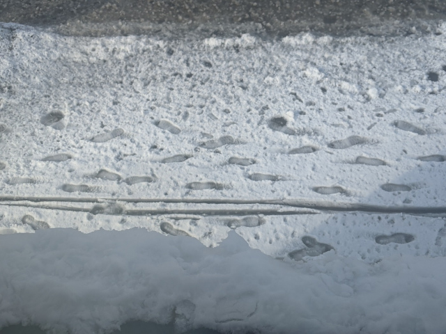 雪解けで一斉に溶け出して川のようになってしまいました。