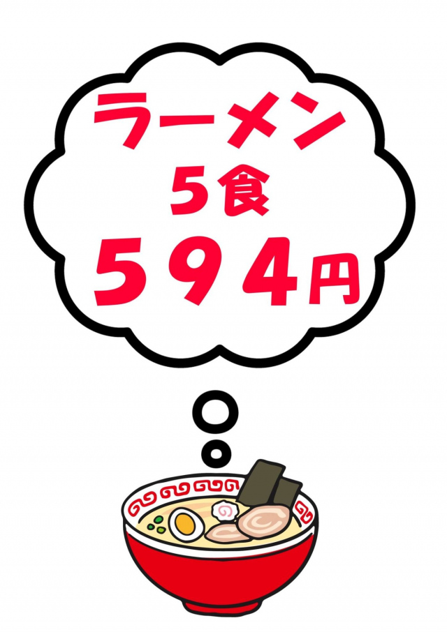 ラーメンは5食1パックで594円!