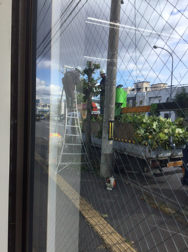店舗前の街路樹がバッサリ刈られてしまい、すっかり寂しい姿になってしまいました(:_;)