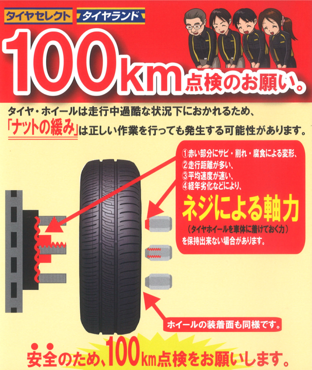 点検内容としては、ナットの増し締めと空気圧調整です。