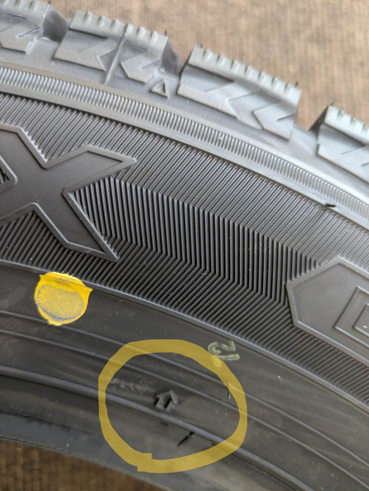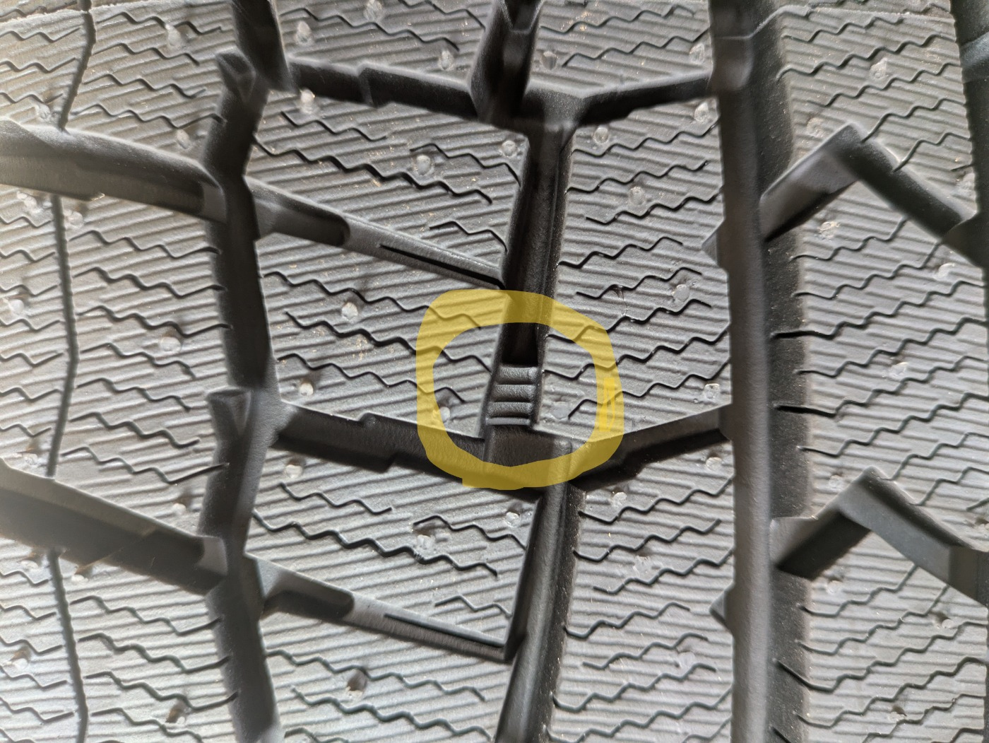 【タイヤセレクト旭川西です♬】 2026/02/18 冬タイヤは安全にどこまで使えるの? ~~~ 旭川のタイヤ屋さん ~~~ 皆さん、こんにちは~ タイヤセレクト旭川西です。 いつも!ホームページご覧頂きありがとうございます。 安全運転してますか? 最近の旭川は道幅も狭くなり 交互通行の道や轍や凸凹道、 暖気と凍結、様々路面。 そして、川の町で橋での上り下りが多い。 上れてますか? 止まれてますか(;^ω^)ヒヤリとしてませんか? ということで。。 本日のテーマは 【冬タイヤは安全にどこまで使えるの?】です。 タイヤには使用限度があります。 スタッドレスタイヤにはトレッド(路面と直接接する部分)にプラットフォームが全4カ所あります。 これらは冬用タイヤ使用限度を示すサインです。 こちらの画像、わかりやすく〇をつけました。 この溝の中のギザギザしているのがプラットフォームです。 タイヤの摩耗が50%に達すると現れます。 1カ所でも露出したら冬用タイヤとして使うことができません。 そして、摩耗が50%以上での使用を禁止している県もありますので、 遠出される方は特にご注意ください。 それでは見つけ方としては サイドウォール部の 中心に近いマークの⬆印は プラットホームの位置を表しています。 矢印のラインを延長上のトレッドの方へ辿ってみると。 溝の中にあります。 安全に走行する為にはプラットフォームが出る前に交換という事です。 当店ではタイヤ点検もしてますのでお声がけください。 今回は詳しく画像は載せませんが △マークはスリップサインがある位置を示しています。 トレッド面が摩耗して溝の深さが1.6mmになると、そこがトレッド面と同じ高さになり、タイヤとしての使用限度となります。 そして、お知らせです。 あなたの愛車の足元をドレスアップしてみませんか? 「プレミアムなタイヤ」取り扱ってます♪ 気になった方は、お話だけでも是非ご来店 お待ちしております。 ↑ タイヤセレクト旭川西は 緑町20丁目2164番地165にございます。 西イオンさんの近くです。 基本、土日・祝日が定休日となっておりますが 2月28日は営業しています。 それでは、最後に今日の旭川です。 路面が出ていてスピードを出したいところですが、 突然の穴が出現しますので引き続き安全運転で過ごしましょう(^^ゞ 2026.02.05