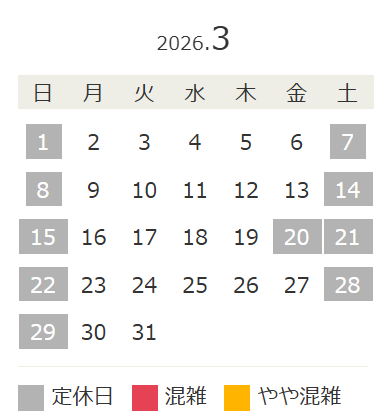 3月の定休日のお知らせです。