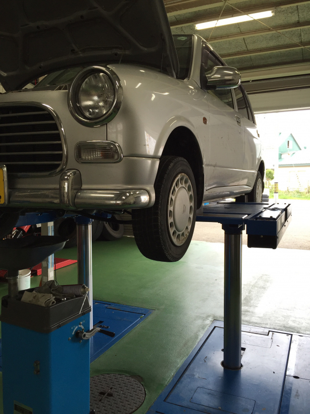 オイル交換作業などでお車の下からも「タイヤ点検」実施しております。