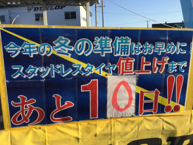 あ、スタッドレスタイヤ値上げまでもーちょいですよー!