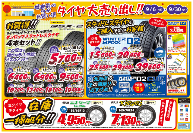 当店では本日より9/30までセールを開催中ですよ!!