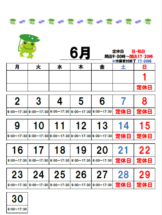 いつもホームページをご覧いただき ありがとうございます。 あつやです! 本日は6月の休日案内です! 最後に、当店からのご案内です。 100km点検のご案内です。 正しい作業を行っていてもナットが緩む可能性がござい...