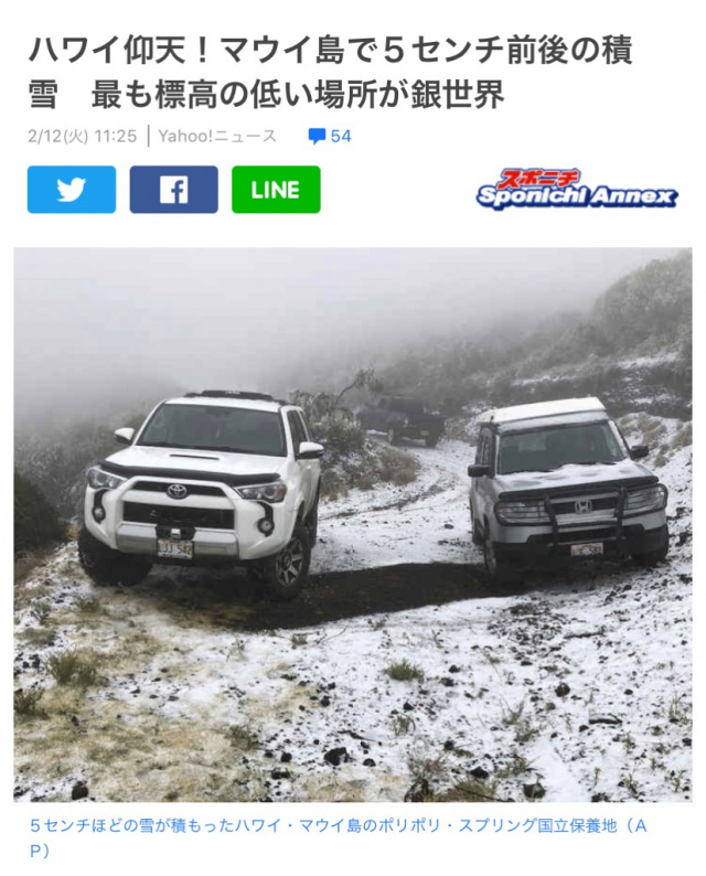 ↑ 南国「 hawaii 」も、雪が降るんですね!!!