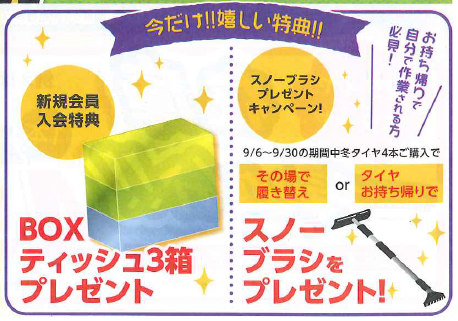 期間中(9/6~9/30)に冬タイヤ4本ご購入され