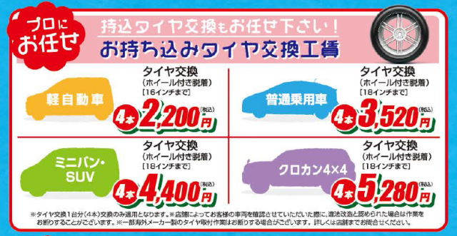 ↑ タイヤは!モチロン♪ オイル・バッテリー・ワイパーも!