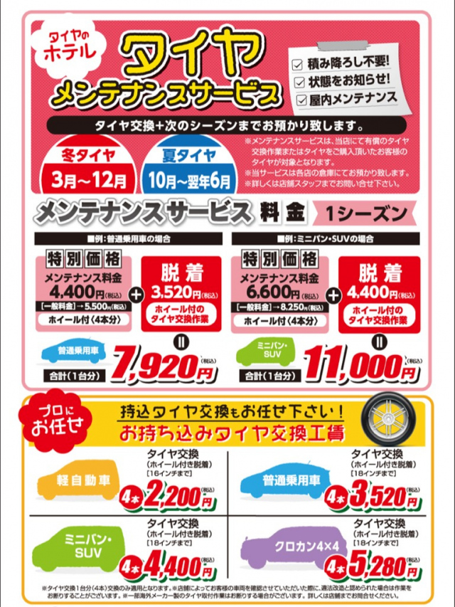↑ 冬タイヤも! 夏タイヤも!加入できます♪