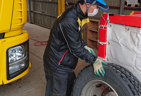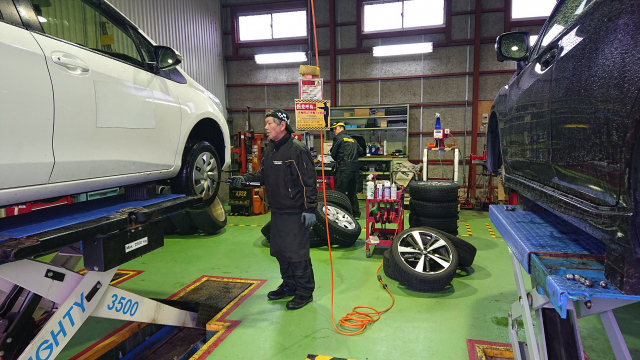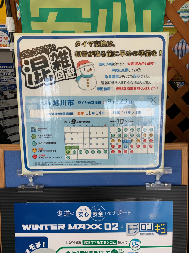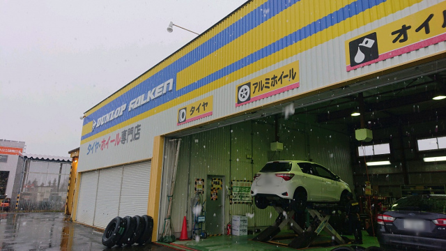 ↓ 雪が降る中、タイヤランド名寄では・・・