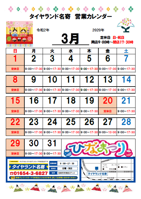 ↑ 3月営業日のご案内です。