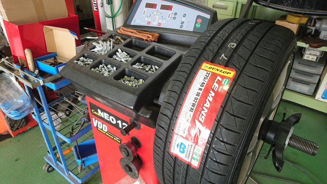 古いタイヤを脱がし、新しいタイヤに組み替えて