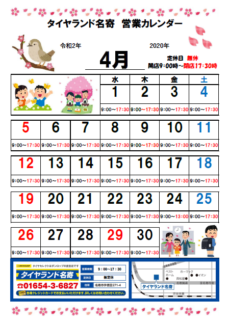 ↑ 4月は休まず営業致します♪