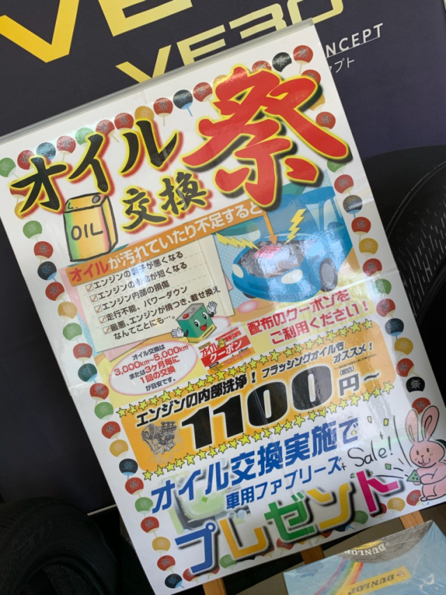↑「 オイル交換・祭♪ 」開催致します。